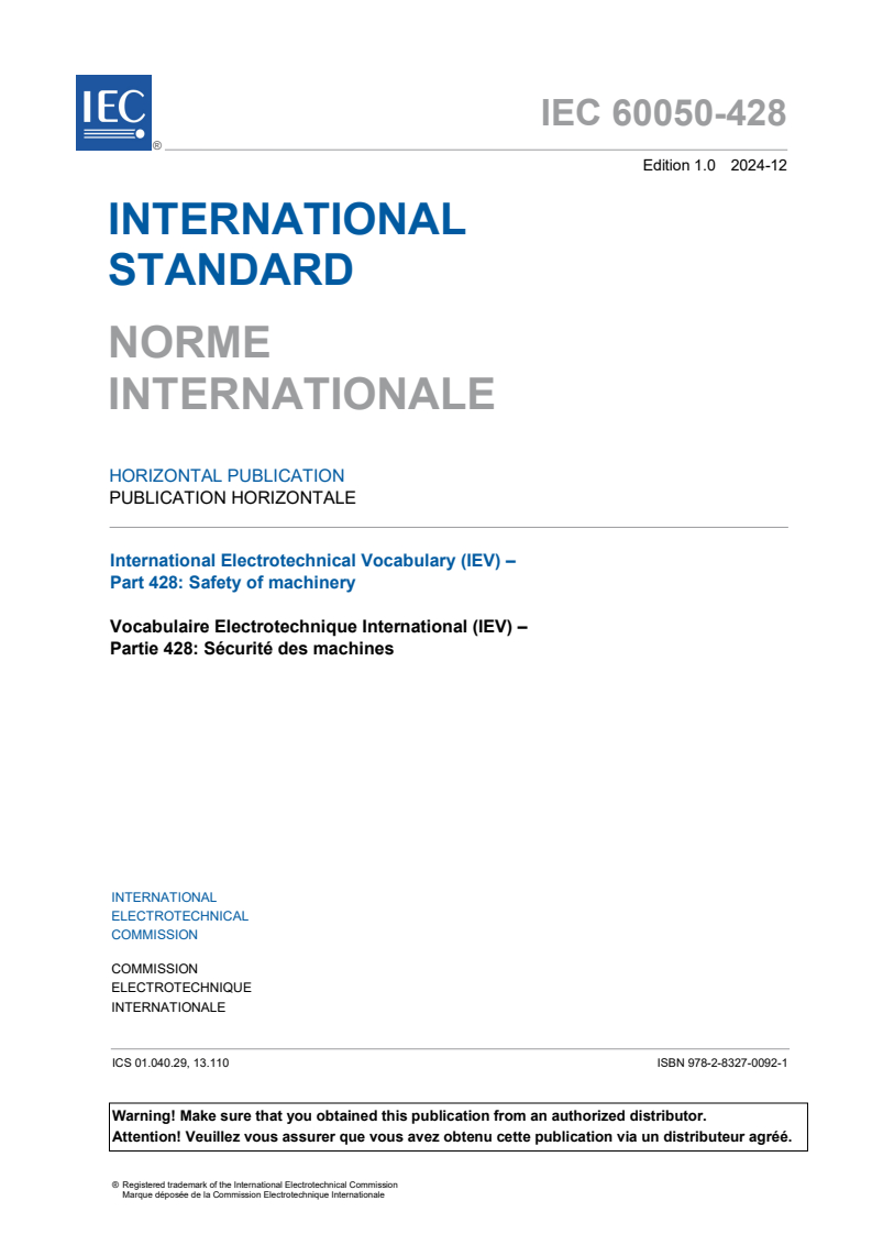 Vocabulaire Electrotechnique International (IEV) – Partie 428: Sécurité des machines