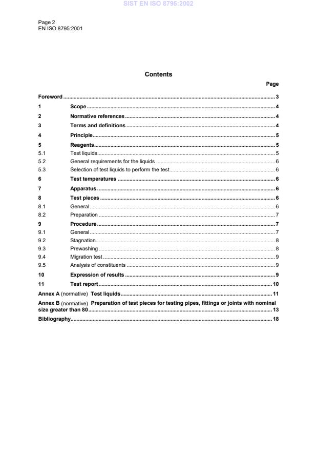 EN ISO 8795:2001 - "Plastics piping systems for the transport of water intended for human consumption - Migration assessment" - specifies a laboratory method to determine migration values from the internal surfaces of plastic pipes, fittings and joints. The standard is focused on chemical migration (extractability) into water; organoleptic and microbiological assessments are excluded. It applies to all plastics products used for drinking water and raw water used to produce drinking water.