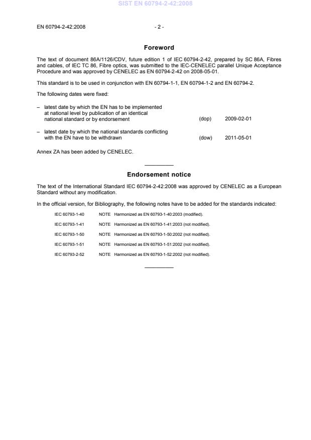Ta slovenski standard je istoveten z: EN 60794-2-42:2008
