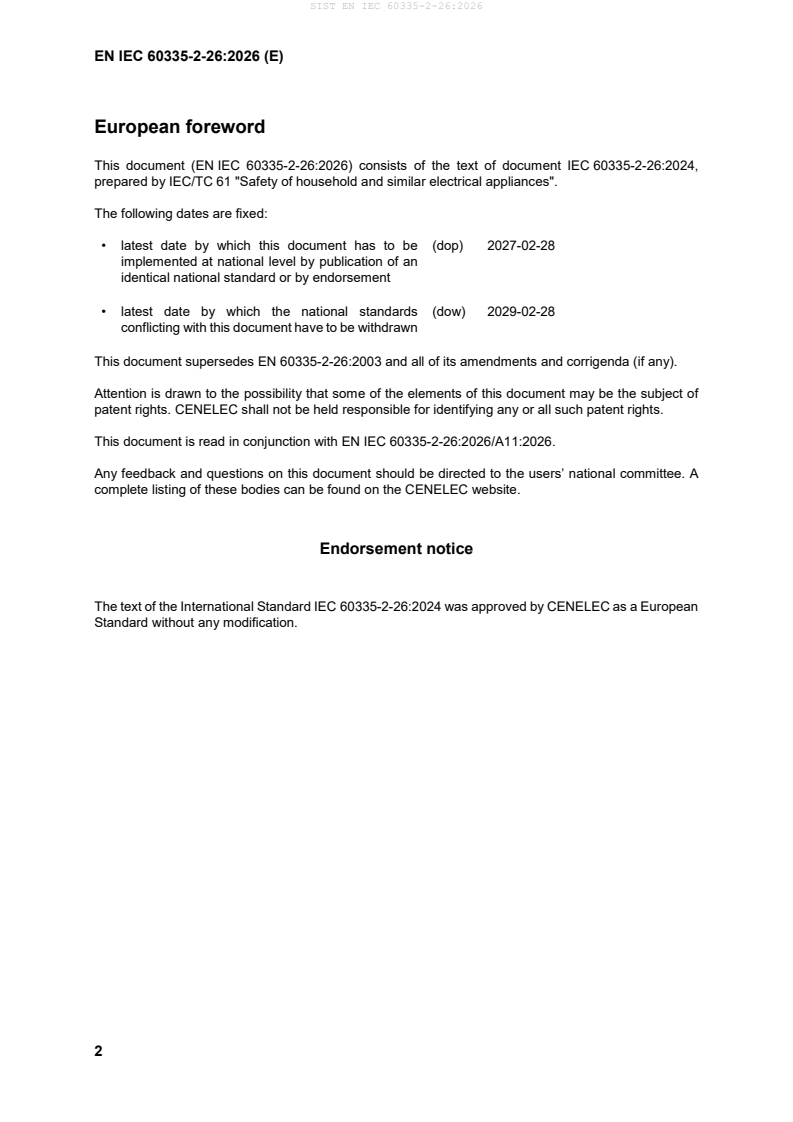 SIST EN IEC 60335-2-26:2026 is available in PDF format for immediate download after purchase. The document can be added to your cart and obtained through the secure checkout process. Digital delivery ensures instant access to the complete standard document.