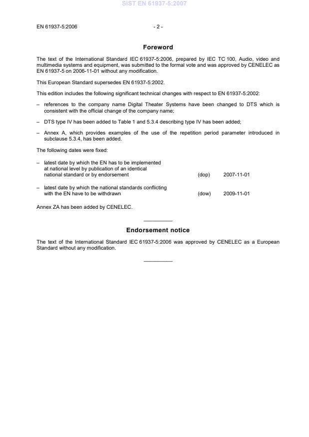 ICS 33.160.60 Supersedes EN 61937-5:2002