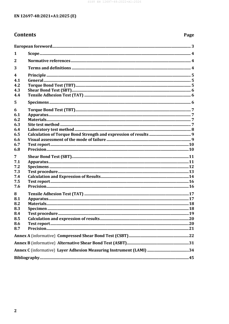 - Anhang B (informativ) – alternative Scherhaftfestigkeitsprüfung (ASBT, en: Alternative Shear Bond Test);
