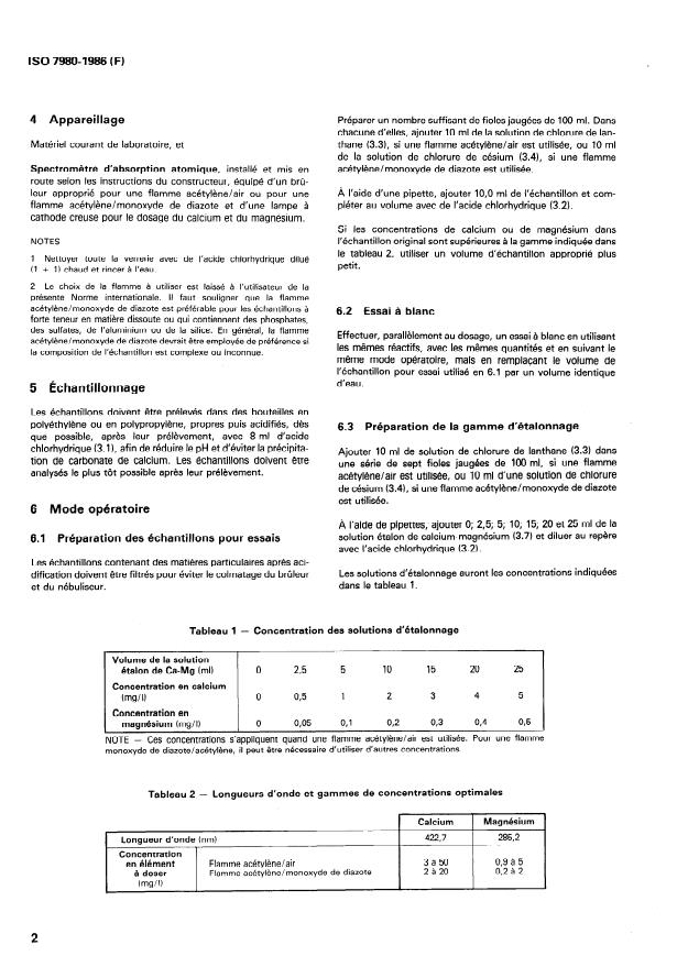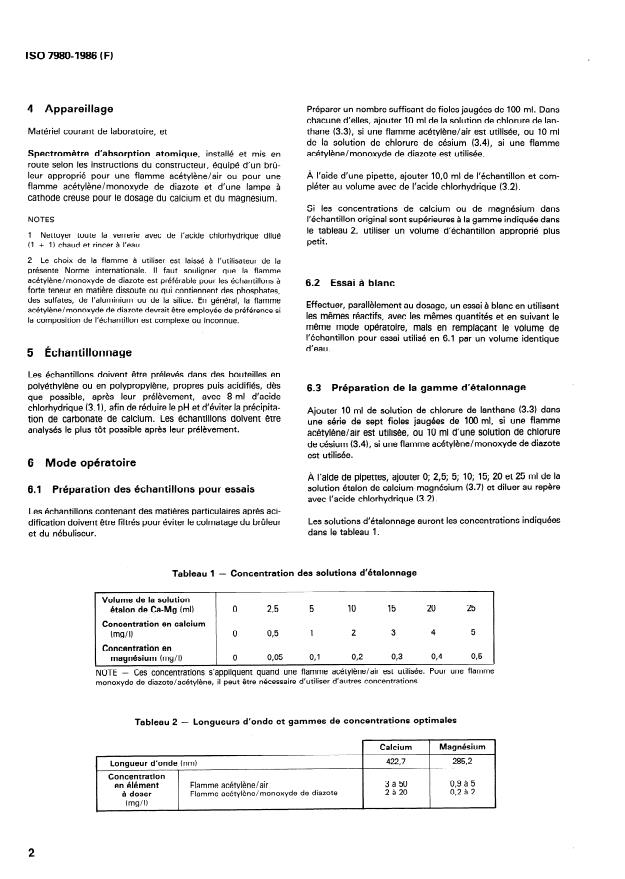 ISO 7980:1986 - Qualité de l'eau -- Dosage du calcium et du magnésium -- Méthode par spectrométrie d'absorption atomique