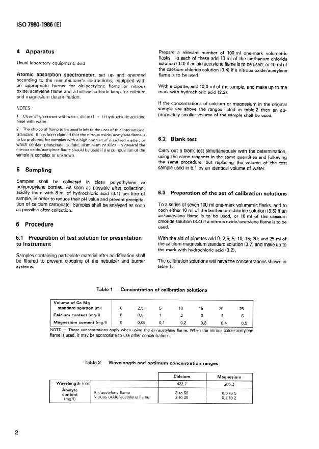 ISO 7980:1986 - Water quality -- Determination of calcium and magnesium -- Atomic absorption spectrometric method