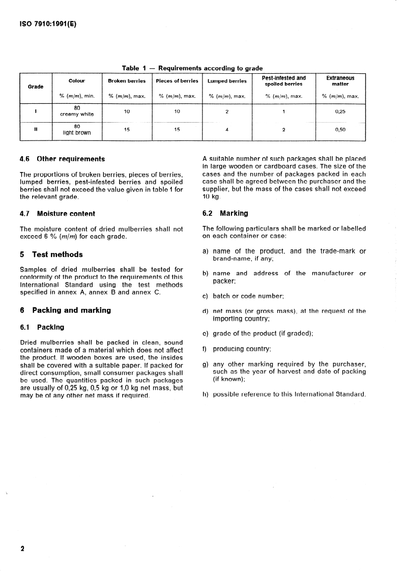 ISO 7910:1991 - Dried mulberries — Specification Released:7/11/1991