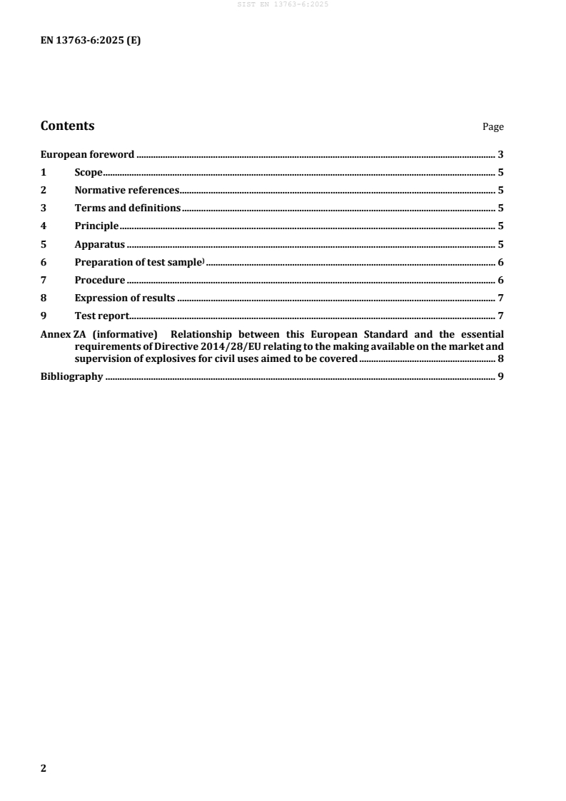 - Directive 2014/28/EU: European legislation governing market availability and safety supervision of civil explosives, with SIST EN 13763-6:2025 recognized as a harmonized standard providing presumption of conformity.