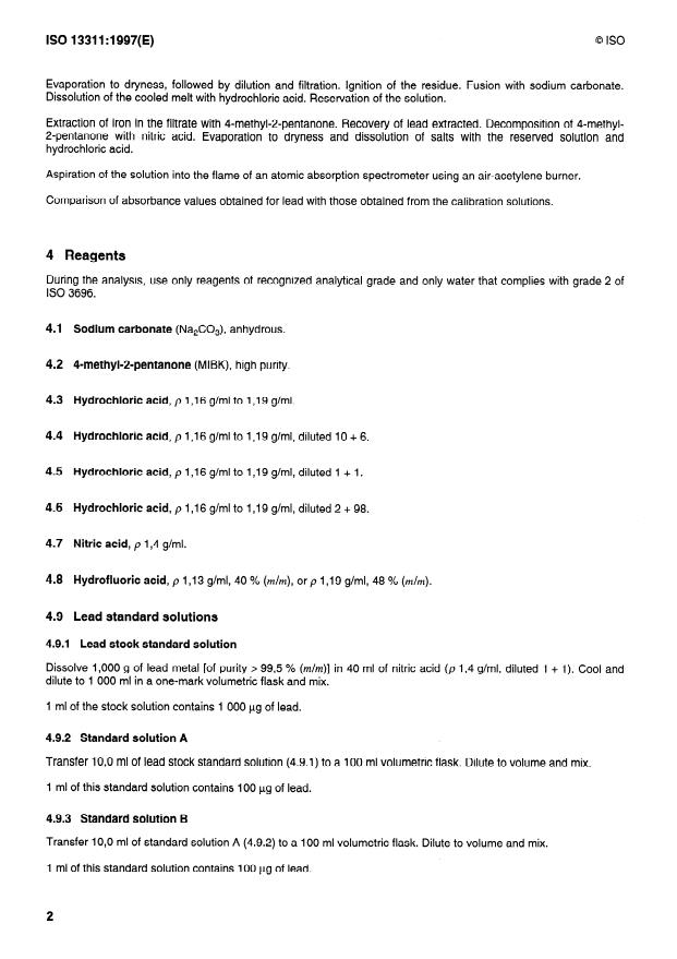 Keywords: ISO 13311:1997, iron ores, lead determination, flame atomic absorption spectrometry, FAAS, sample preparation, MIBK, hydrofluoric acid, sodium carbonate, certified reference material.