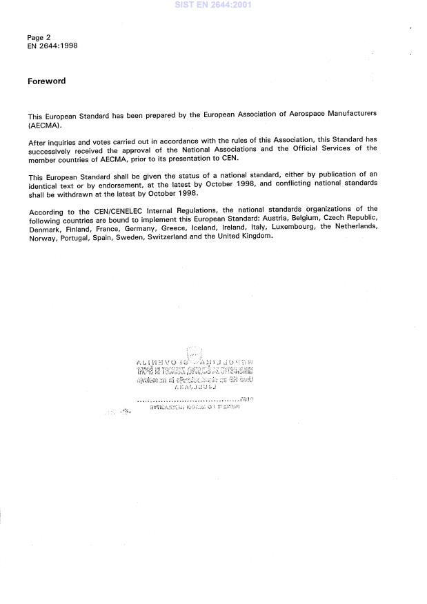 (EN 2644:1998 was adopted by some national bodies - for example as SIST EN 2644:2001 - preserving the technical specification across member states.)