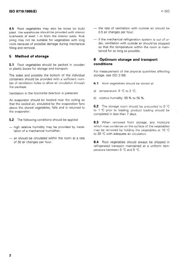 Keywords: ISO 9719, cold storage, refrigerated transport, root vegetables, storage conditions, temperature, relative humidity, ventilation, packaging, long‑term storage.