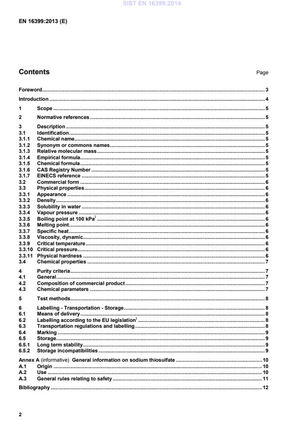The document also provides guidance on the safe handling, transportation, and storage of sodium thiosulfate to protect users and maintain product integrity. SIST EN 16399:2014 supports uniform quality control and regulatory compliance across European markets for this chemical.