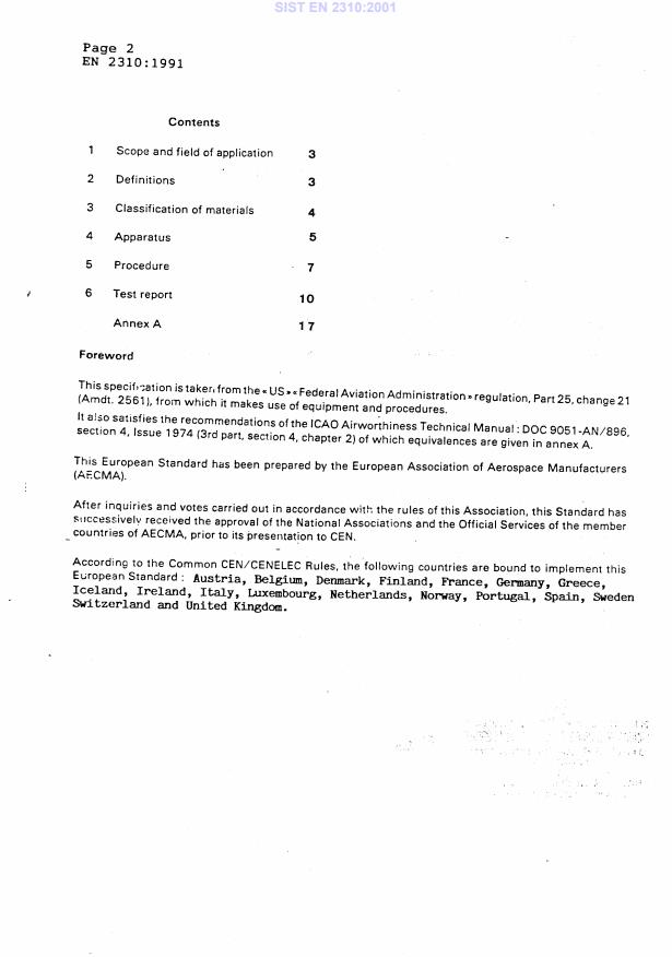 Keywords: EN 2310, flame resistance, non‑metallic materials, aerospace, test methods, flammability, material testing, classification.