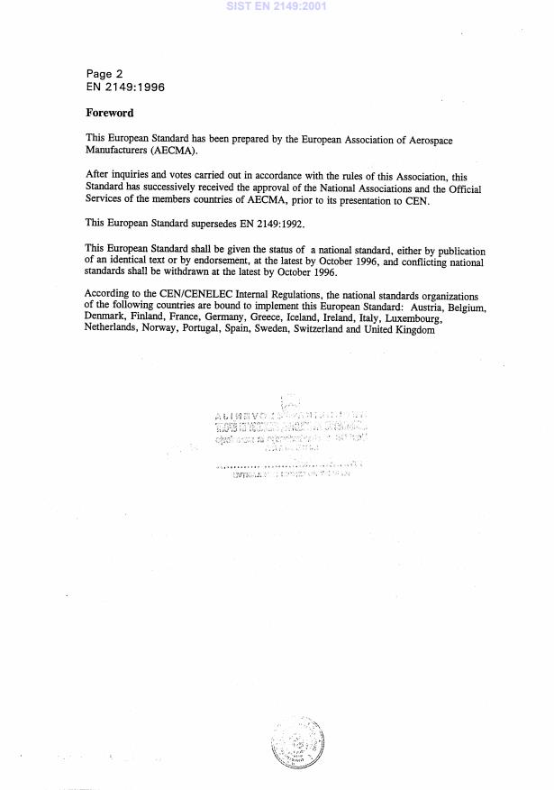 - EN 2149:1996 is a CEN aerospace series document; it was nationally adopted in Slovenia as SIST EN 2149:2001.