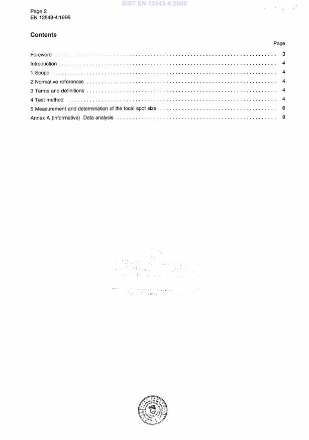 SIST EN 12543-4:2000 is a standard published by the Slovenian Institute for Standardization (SIST). Its full title is "Non-destructive testing - Characteristics of focal spots in industrial X-ray systems for use in non-destructive testing - Part 4: Edge method". This standard covers: This European standard specifies the checking of focal spot dimensions above 0,5 mm of X-ray systems up to and including 500 kV tube voltage, by means of radiographs of sharp edges. The image quality and the resolution of X-ray images depend highly on the characteristics of the focal spot. The imaging qualities of a focal spot are based on the two dimensional intensity distribution in the object plane.