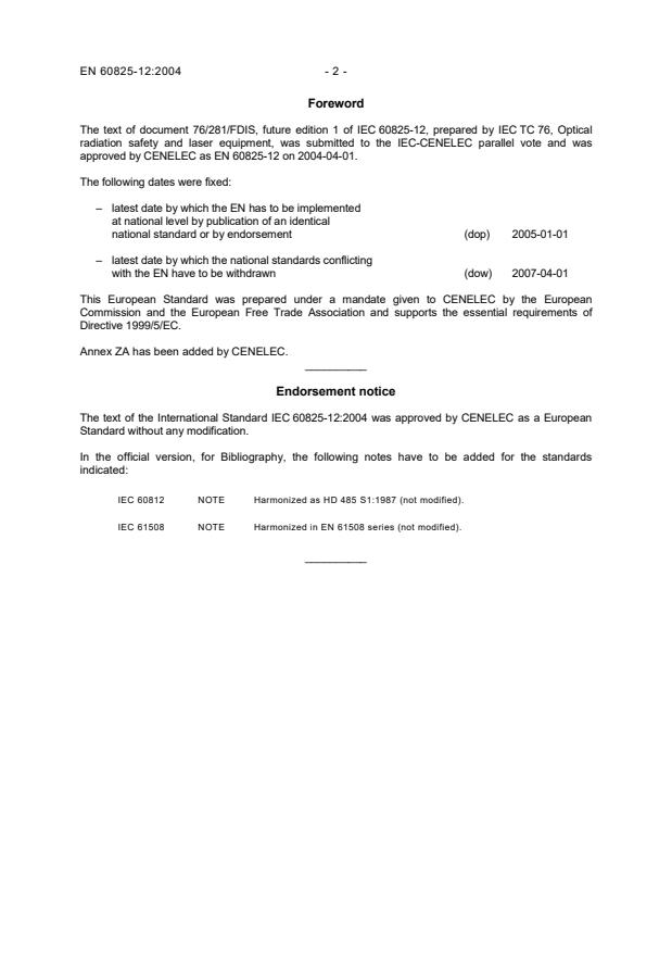 Ta slovenski standard je istoveten z: EN 60825-12:2004