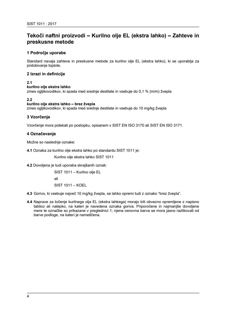 SIST 1011:2011 - Liquid petroleum products - Fuel oil extra light - Requirements and test methods - Effective Date