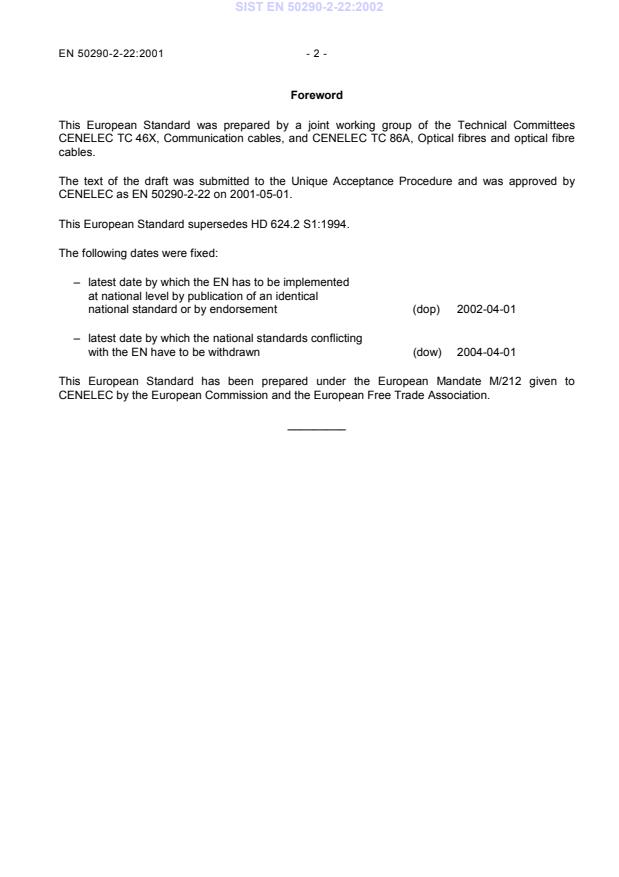 Ta slovenski standard je istoveten z: EN 50290-2-22:2001