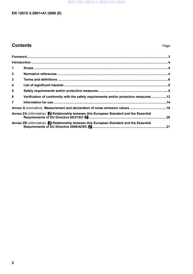 !!!!Relationship between this European Standard and the Essential Requirements of EU Directive 2006/42/EC"""".21