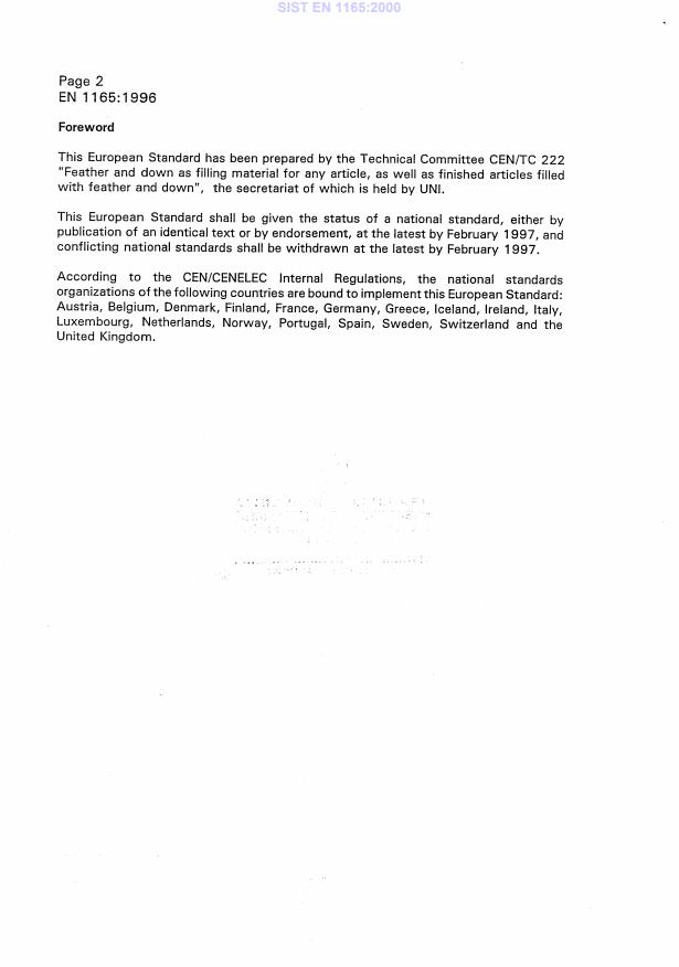 - CEN standards for feathers and down: EN 1165:1996 forms part of the body of European test methods for feathers and down; other related test methods address fill power, contamination, and cleanliness.