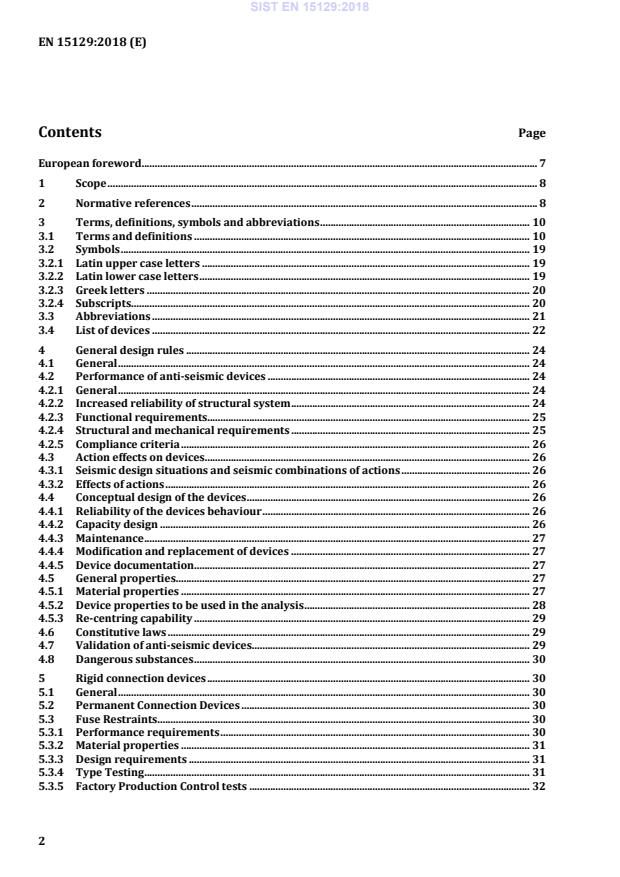 Ta evropski standard zajema zasnovo naprav v konstrukcijah z namenom spreminjanja njihovega odziva na potresne vplive. Določa funkcionalne zahteve in splošna pravila načrtovanja za potresna stanja, lastnosti materiala, zahteve za izdelavo in preskušanje ter ocenjevanje skladnosti, namestitve in zahtev za vzdrževanje. Ta evropski standard zajema vrste in kombinacije naprav, kot so opredeljene v točki 3.4.