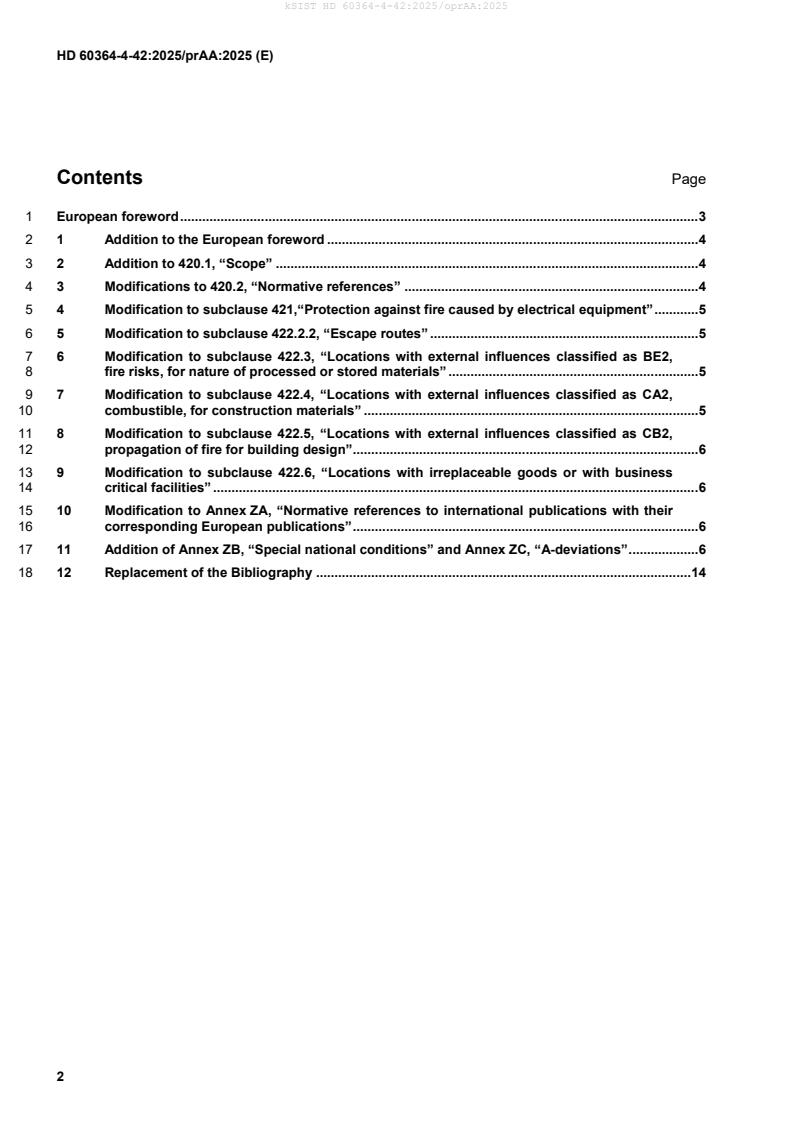 This draft amendment prAA, if approved, will modify the Harmonization Document HD 60364-4-42:2025; it is submitted to CENELEC