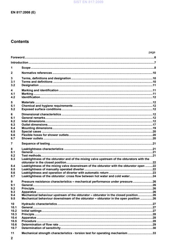 NOTE Acoustic testing will require three samples which can be different from the two mentioned above. 8 Leaktightness characteristics 8.1 General This clause describes the test methods that shall be carried out to verify the leaktightness of the mechanical mixing valve and specifies the corresponding requirements (see 0). 8.2 Test methods 8.2.1 Principle The principle of the test consists of checking under cold water pressure the leaktightness of: the obturator (see 8.3); the complete mixing valve (see 8.4); the bath/shower diverter (either manual or with automatic return) (see 8.5 and 8.6). In the case of a diverter with automatic return being considered to provide backflow prevention, it shall comply with the requirements of EN 14506. 8.2.2 Apparatus A hydraulic test circuit capable of gradually supplying the required static and dynamic pressures and of maintaining them throughout the duration of the test(s). SIST EN 817:2009