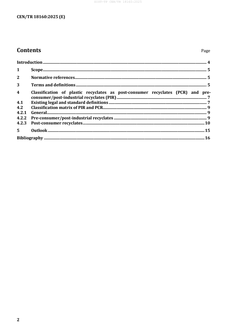 Keywords: CEN/TR 18160:2025, plastics recycling, PCR, PIR, recyclates, post‑consumer recyclates, post‑industrial recyclates, recycled content, circular economy.