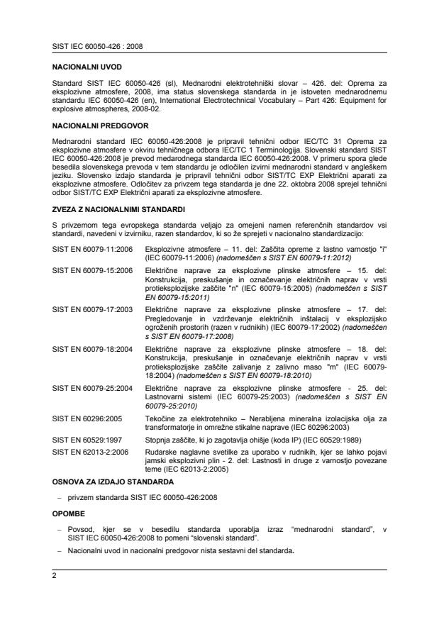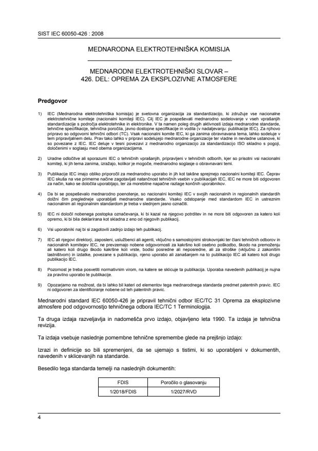SIST IEC 60050-426:2008 is a standard published by the Slovenian Institute for Standardization (SIST). Its full title is "International Electrotechnical Vocabulary - Part 426: Equipment for explosive atmospheres". This standard covers: This second edition cancels and replaces the first edition published in 1990. This edition constitutes a technical revision. This edition included the following significant technical changes with respect to the previous edition: Terms and definitions have been revised to align with those used in the documents listed in the normative references. It has the status of a horizontal standard in accordance with IEC Guide 108.