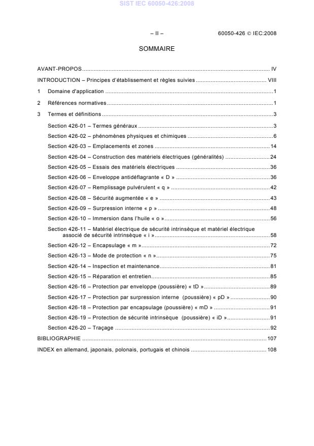 SIST IEC 60050-426:2008 comprehensively covers terms and definitions essential for understanding and managing electrical equipment in hazardous explosive atmospheres. The standard is structured into detailed sections that address: