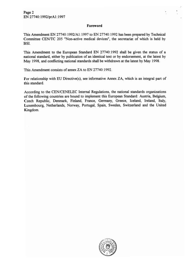 SIST EN 27740:2000/A1:2000 is associated with the following European legislation: EU Directives/Regulations: 93/42/EEC; Standardization Mandates: M/023. When a standard is cited in the Official Journal of the European Union, products manufactured in conformity with it benefit from a presumption of conformity with the essential requirements of the corresponding EU directive or regulation.