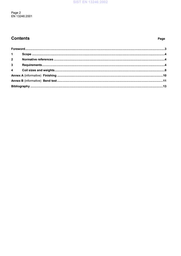Page 2EN 13246:2001Contents PageForeword.31Scope.42Normative references.43Requirements.44Coil sizes and weights.8Annex A (informative)