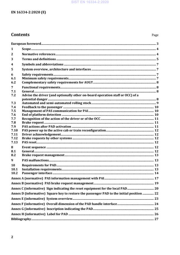 EN 16334-2:2020 - Railway applications: Passenger alarm system - Part 2: System requirements for urban rail defines the characteristics, safety and functional behaviour of the Passenger Alarm System (PAS) fitted to urban rail rolling stock. It applies to categories I–III as defined in CEN/CLC Guide 26: metros, trams and light rail, and covers vehicles with or without a driver. The standard specifies passenger-triggered functions, communications to the driver or Operations Control Centre (OCC), degraded-mode management and installation requirements for the Passenger Alarm Device (PAD) and Passenger Alarm Interface (PAI).