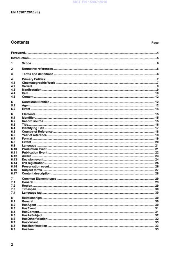Cardinality: one or more for Cinematographic Work, zero or more for Variant, Manifestation and Item 6.2.2 Attributes None 6.2.3 Elements Source name SIST EN 15907:2010