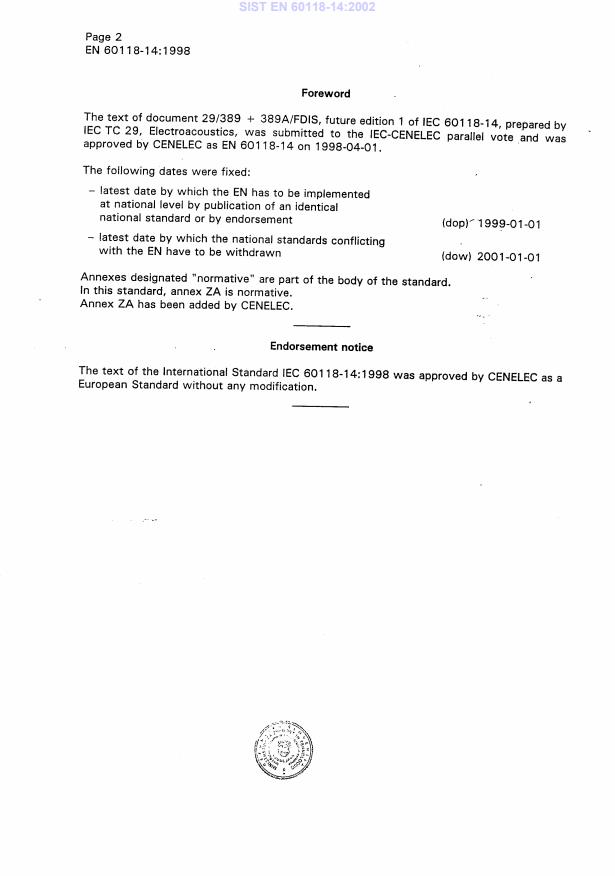 Ta slovenski standard je istoveten z: EN 60118-14:1998