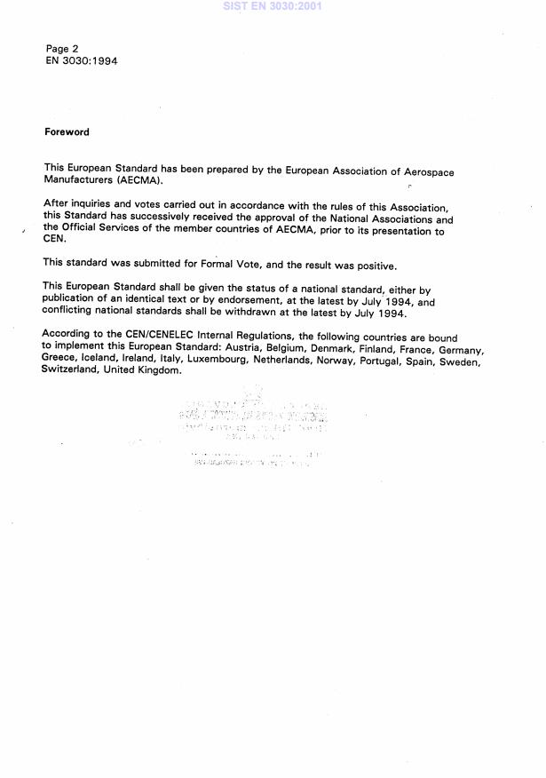 SIST EN 3030:2001 is part of the broader aerospace series standards covering testing and material specifications for aerospace components.