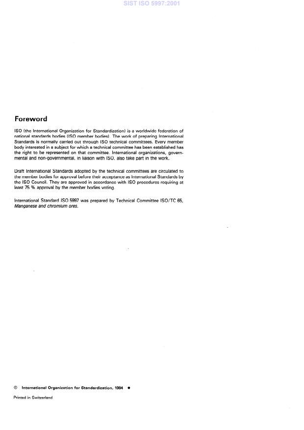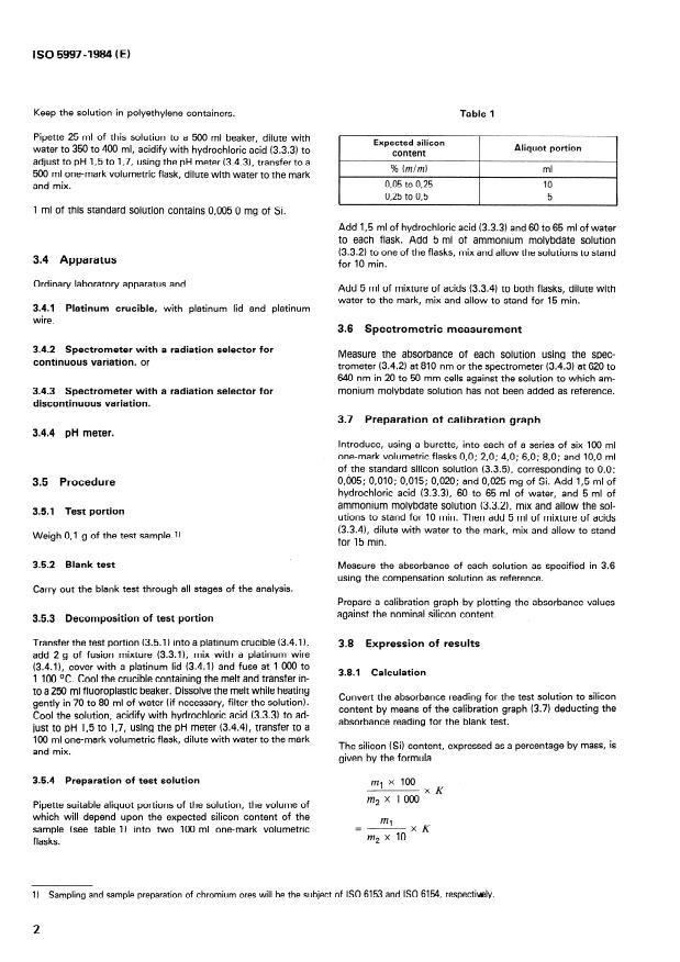 Keywords: ISO 5997:1984, chromium ores, silicon determination, molecular absorption spectrometric method, gravimetric method, spectrometric measurement, fusion, ammonium molybdate, calibration.