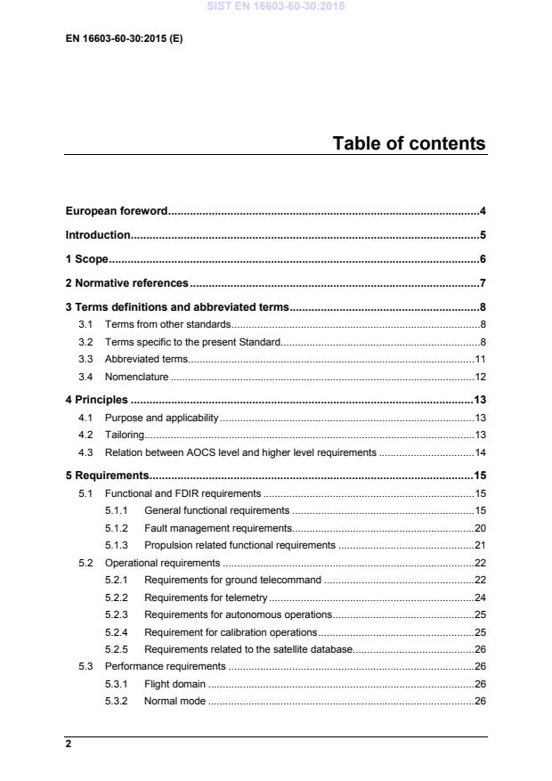 • Real-time on-board trajectory guidance and control • Real-time on-board relative position estimation and control Example of such missions are rendezvous, formation flying, launch vehicles and interplanetary vehicles. Although the present document does not cover the above mentioned types of mission, it can be used as a reference document for them. This standard may be tailored for the specific characteristic and constraints of a space project in conformance with ECSS-S-ST-00. SIST EN 16603-60-30:2015
