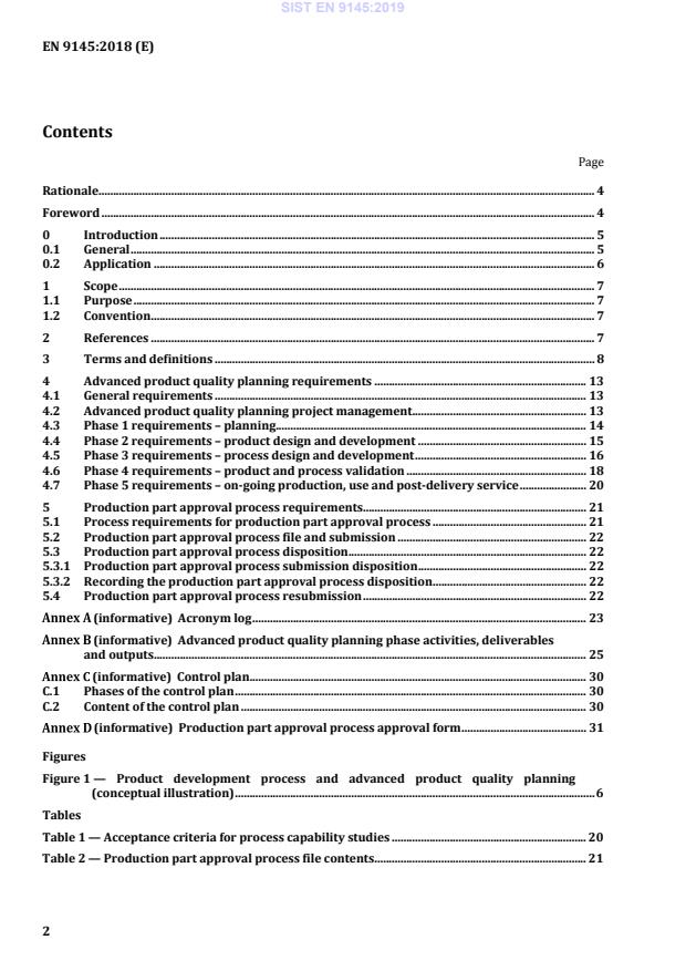 Ta standard določa zahteve za izvajanje in dokumentiranje naprednega načrtovanja kakovosti izdelkov (APQP) ter procesa odobravanja proizvodnih delov (PPAP). Napredno načrtovanje kakovosti izdelkov temelji na konceptualnih potrebah po izdelkih in zajema opredelitev izdelkov, načrtovanje proizvodnje, validacijo izdelkov in postopkov (npr. PPAP), uporabo izdelkov ter storitev po dostavi. Ta standard upošteva in uporablja zahteve standardov EN 9100, EN 9102, EN 9103 ter EN 9110.