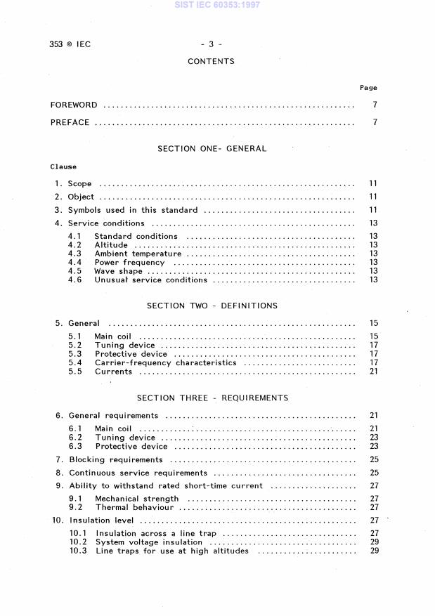 SIST IEC 60353:1997 is a standard published by the Slovenian Institute for Standardization (SIST). Its full title is "Line traps for a.c. power systems". This standard covers: Applies to line traps inserted into high-voltage a.c. transmission lines that prevent undue loss of carrier signal power in the range 30 kHz to 500 kHz under all power system conditions, and that minimize interference from carrier signalling systems on adjacent transmission lines.