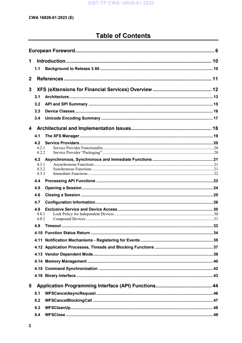 (Main)Extensions for Financial Services (XFS) interface specification Release 3.50 - Part 61: Application Programming Interface (API) - Service Provider Interface (SPI) - Programmer's Reference - Migration from Version 3.40 (CWA 16926:2000) to Version 3.50 (this CWA)