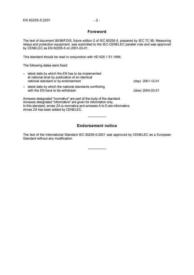 The text of the International Standard IEC 60255-5:2001 was approved by CENELEC as a European