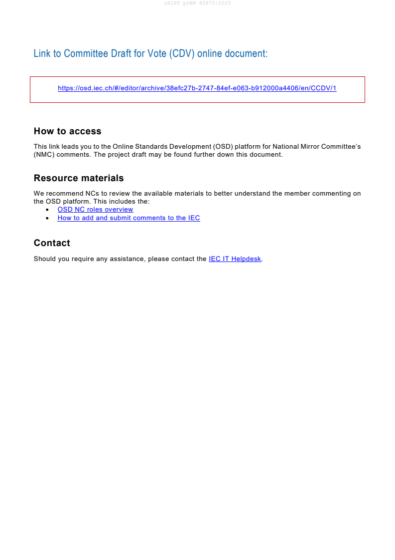 Understanding oSIST prEN 62675:2025 also involves awareness of complementary IEC and CENELEC standards in the same domain:
