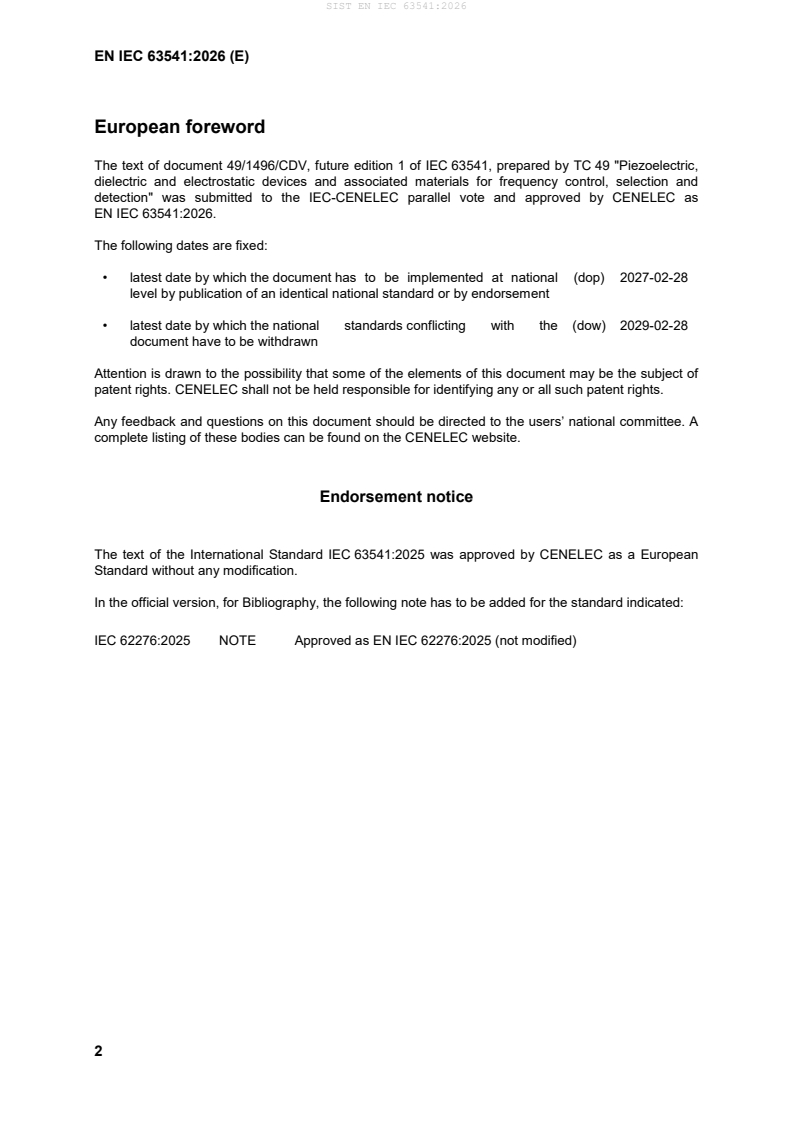 © 2026 CENELEC All rights of exploitation in any form and by any means reserved worldwide for CENELEC Members.