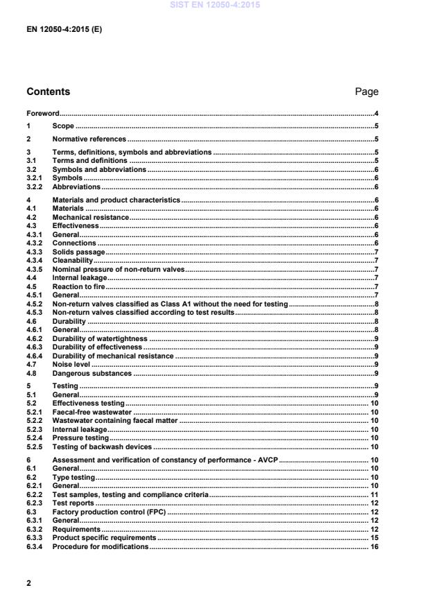 Clauses of this European Standard addressing the provisions of the EU Construction Products Regulation . 18 ZA.1 Scope and relevant characteristics . 18 ZA.2 Procedure for AVCP of non-return valves for faecal-free wastewater and wastewater containing faecal matter . 19 ZA.2.1 System(s) of AVCP . 19 ZA.2.2 Declaration of performance (DoP) . 23 ZA.2.2.1 General . 23 ZA.2.2.2 Content. 23 ZA.2.2.3 Example of DoP . 24 ZA.3 CE marking and labelling. 26 Bibliography . 30
