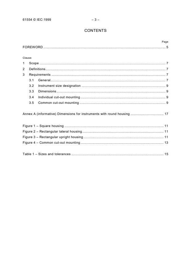 Keywords: IEC 61554, panel mounted equipment, electrical measuring instruments, dimensions for panel mounting, panel cut-out, bezel, instrument size, dimensional interchangeability, common cut-out.