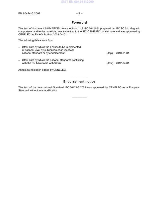 SIST EN 60424-5:2009 is classified under the following ICS (International Classification for Standards) categories: 29.100.10 - Magnetic components. The ICS classification helps identify the subject area and facilitates finding related standards.