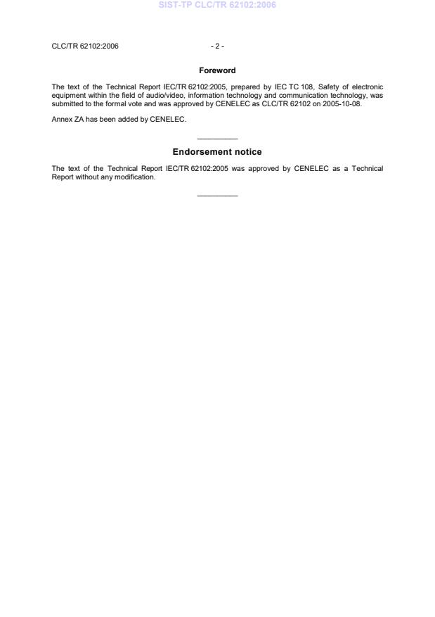 SIST-TP CLC/TR 62102:2006 has the following relationships with other standards: It is inter standard links to SIST-TP CLC/TR 62102:2005. Understanding these relationships helps ensure you are using the most current and applicable version of the standard.