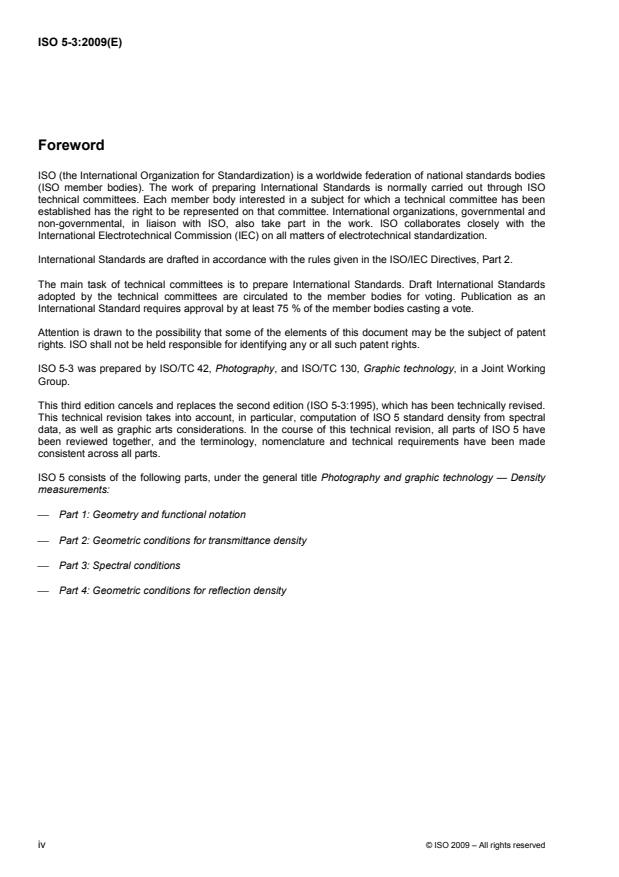 - Computation procedures: methods for calculating ISO 5 standard density from spectral reflectance or transmittance data (see Annex B and Annex D).