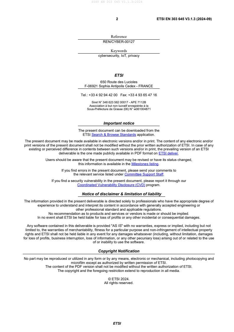 2 ETSI EN 303 645 V3.1.3 (2024-09)