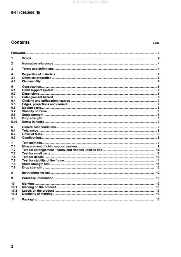 EN 14036:2003 is a CEN (European Committee for Standardization) safety standard for vertically suspended baby bouncers intended for domestic use. It specifies minimum safety requirements and test methods for products designed for children who can support their head unaided up to a maximum weight of 12 kg. The standard excludes products that allow the child to lie down (e.g., vertically suspended moses baskets and carrycots) and baby bouncers designed for children with special needs.