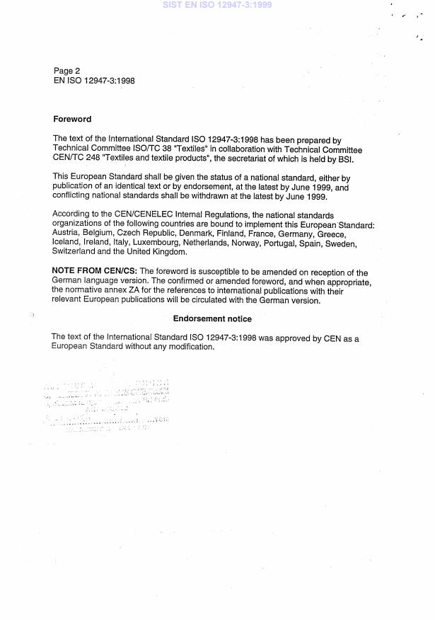 SIST EN ISO 12947-3:1999 is classified under the following ICS (International Classification for Standards) categories: 59.080.30 - Textile fabrics. The ICS classification helps identify the subject area and facilitates finding related standards.